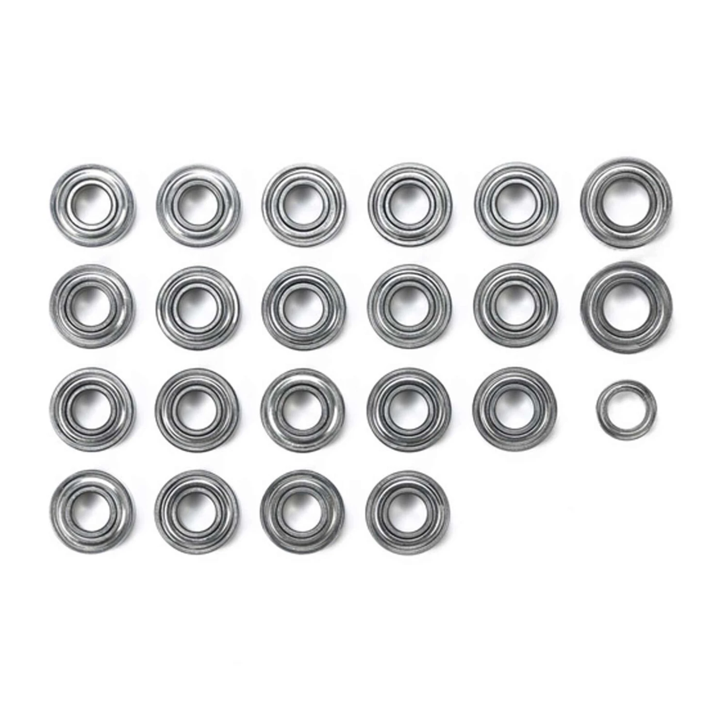 This ball bearing set is for the Tamiya Semi-Truck series of R/C vehicles. The set can be used in place of the kit standard metal bearings to decrease drivetrain friction/noise and facilitate longer running time.