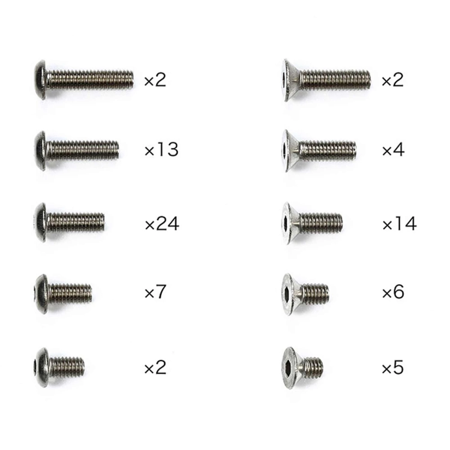 - (13) 3x8mm Titanium Countersunk Hex Head Screws